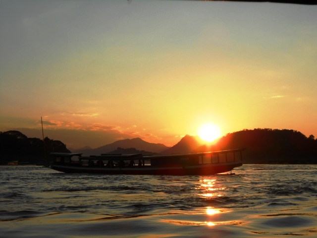 Luang Praban ofrece las mejores puestas de sol que hemos disfrutado en este viaje (por ahora). Cada atardecer hay que buscar un lugar donde disfrutar de ese momento magico que para muchos es el mejor del dia. Tomando una cerveza a orillas del Mekong o recorriendolo rio abajo en un sampan, o desde una de las colinas de la ciudad como el archiconocido Monthe Phusi (rodeado de turistas) o el View Hotel & Resort, tomando un mojito en su Happy Hour 2×1. Para gustos colores, dice siempre Louise.