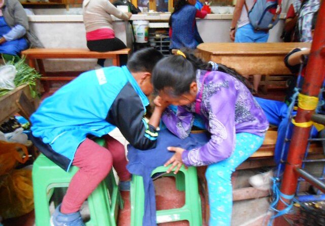 Ante la imposibilidad de «incluirnos» en un crucero de semi-lujo ;), decidimos tomar una especie de barcaza/ferry que zarpa de Mandalay alas 5.30 de la manana y permite una jordada de dolce far niente ideal para recuperar fuerzas, dormir y leer. Asi pues nuestro plan era dedicar esta jornada y la del regreso (4 dias despues) a esos menesteres. Resulto ser un viaje muy agradable (el tiempo era perfecto) y el plato de arroz o noodles con pollo y verduras -como almuerzo- nos supo a gloria.