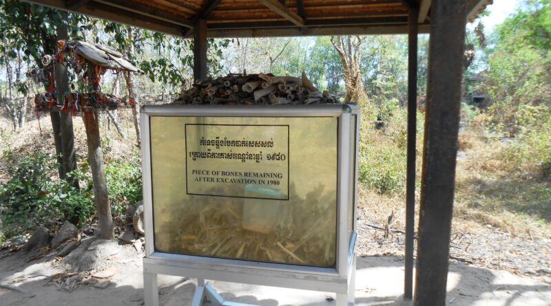 Así pues, a Choeung Ek me llevó Sepha en su moto. Llegó recomendado por un colega que maneja ‘remok‘ y que cada día, a la puerta del hotel, quería convencerme de viajar con él pero que ante mi negativa razonada (más rapidez y para evitar atascos). Recorrimos un camino semi-rural de unos 8 km. hasta llegar a este recinto, escenario de uno de los capítulos más sangrientos de la historia del ser humano. Fue allí donde unos 17.000 hombre, mujeres y niños fueron asesinados, la mayoría con rudos instrumentos agrícolas «para ahorrar munición», escriben los libros de relatos de los pocos supervivientes de aquella masacre. Pocos pueden evitar allí las lágrimas y nadie el sobrecogimiento. Es una visita dura, pero conmovedora y recomendable, aunque no sea más que para vacunarse contra el horror, como parecen haber hecho ya los apacibles y amables camboyanos.