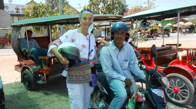 Como esta capital no tiene un sistema de transporte público amplio, las visitantes no tenemos otra que utilizar los ‘remok’ o ‘tuk-tuk’ locales y las ‘moto-taxi’, todos manejados por hombres mayores en los que me pareció ver las huellas de un pasado de dolor y sufrimiento. Y es que la población masculina de Camboya no es de más de 30 años debido al holocausto perpetrado por Pol Pot y su gobierno genocida entre ____ y 1975. Se masacraron sobre todo a varones -aunque también a muchas mujeres y niños- por lo que muchos de estos últimos son los jóvenes de hoy de alrededor de 30 años.