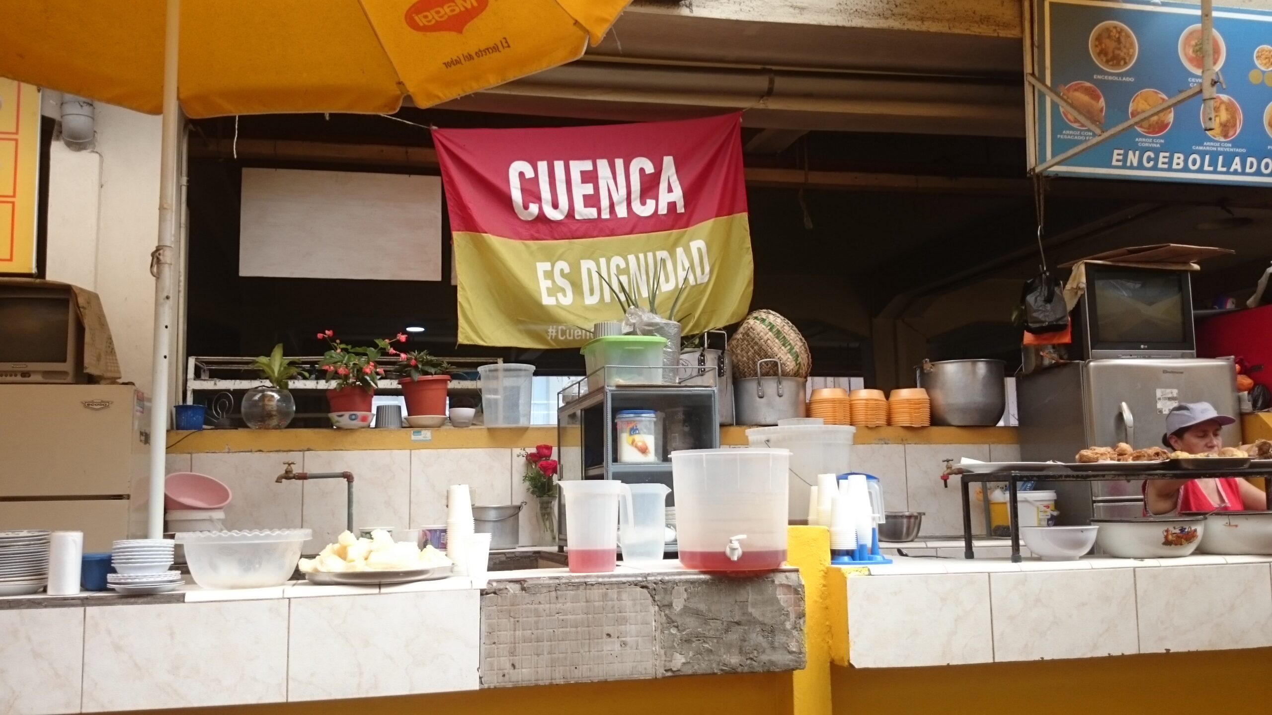 Cuenca es hoy un centro agrícola y administrativo regional, en el que la población local se ha mezclado con sucesivas generaciones de emigrantes. La mayor parte de sus edificios datan del siglo XVIII, pero la arquitectura urbana se modernizó con la prosperidad económica de que se benefició la ciudad en el siglo XIX, cuando se convirtió en un centro de exportación importante de quinina, los renombrados sombreros de jipijapa (conocidos como sombrero Panama) y otros productos. Los mercados son el lugar ideal para captar el ritmo de la ciudad y sobre todo para comer bien por poco precio y todo fresco. Y yo no dejé pasar esta oportunidad ….