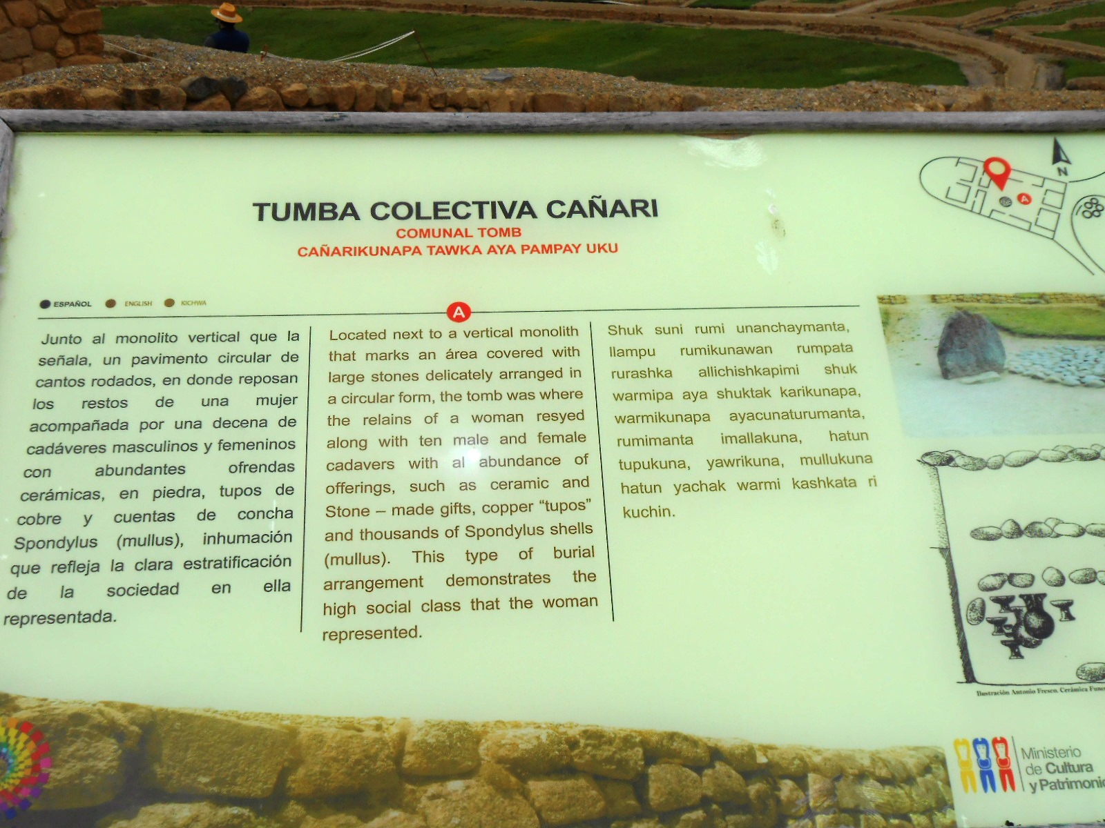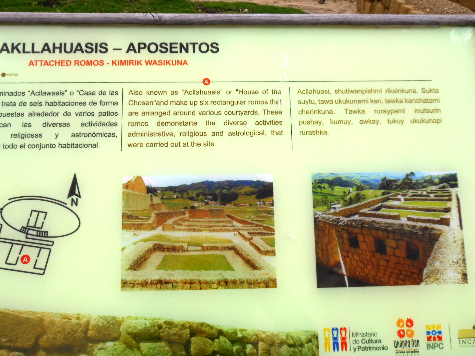 Ingapirca (a 2.320 m.s.n.m.) es la estructura prehispánica mejor conservada del país y el conjunto arquitectónico Inca más grande de Ecuador. Es un gran complejo ceremonial, político, administrativo y astronómico de la cultura Cañar-Inca. Los Incas, al ir expandiéndose, llegaron a Ecuador, pero no pudieron someter a este pueblo por lo que se unieron a ellos y crearon una administración conjunta, cuyos restos son los que visité. Está conformado por un cementerio, observatorios solares, un templo, depósitos, aposentos de sacerdotes, una plaza ceremonial y calles empedradas, y todo en muy buen estado. Es un gran museo abierto con senderos, letreros e indicaciones de la vida que se llevaba a cabo. Las visitas son todas guiadas por lo que es una buena experiencia para conocer más de esta cultura. Hay varios senderos aledaños al sitio donde uno puede caminar y recorrer, uno de ellos lleva a una roca que curiosamente tiene el perfil de un Inca, en el camino, hay pequeñas casitas de los pobladores muy típicas y bonitas. Hay también una cafetería, venta de artesanía y replicas de cerámicas fabricada por los mismos habitantes del lugar.