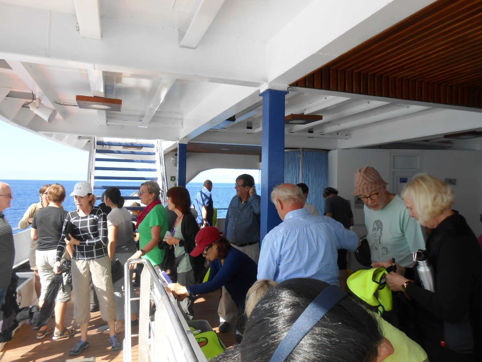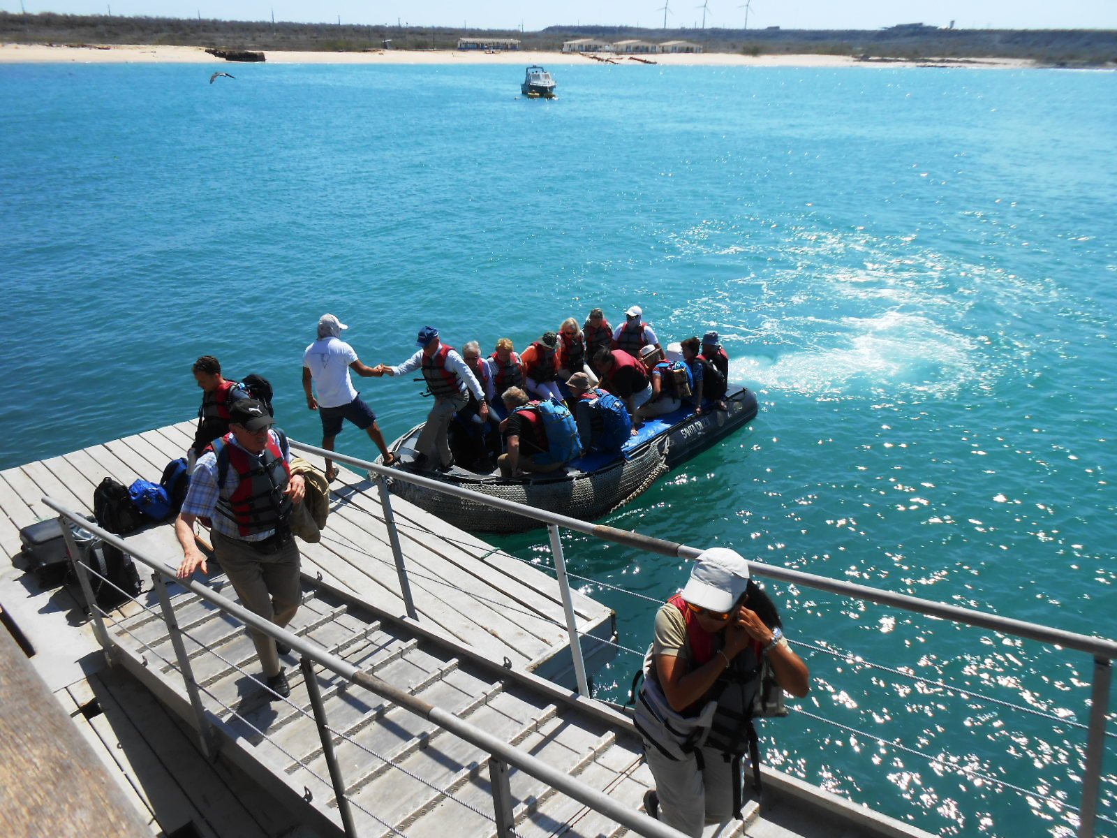 Mi vuelo desde Guayaquil me trae a San Cristobal, la más oriental cuyo aeropuerto recibe cada día decenas de viajeros. Un corto trayecto hasta Puerto Baquerizo y ‘todos a bordo’ para comenzar una maravillosa experiencia de 5 días. La mayoría del pasaje (unos 50 viajeros) es de habla anglosajona (nórdicos, alemanes, norteamericanos, ingleses, etc.) y solo unos pocos de habla hispana (México, Chile, Colombia y dos españoles, Martín y yo). Desde el primer almuerzo a bordo empezamos a conocernos y nuestra guía nos llevará de excursión siempre en grupo …. por comodidad)