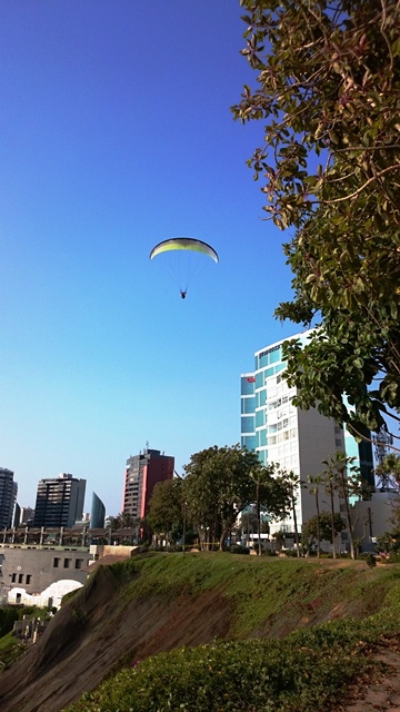 Los acantilados de Miraflores suelen mostrar un horizonte nuboso, pero en estos meses de verano el día ofrece un cielo claro y de pronto empiezo a ver como está salpicado de paracaídas de colores. Son los osados que deciden sobrevolar esta zona costera de Lima en parapente, una de las actividades más populares en el área. Los que me conocen saben que este tipo de experiencia me atrae mucho, así que me decidí a darme el gusto de volar por esta costa metropolitana que ofrece vistas incomparables. Los vuelos salen del parapuerto de la cima, en el parque del Amor, (alrededor de 60 euros por vuelos de 15 minutos de duración). Qué emoción … a topeeee. Lo recomiendo y procuraré repetir la experiencia en otros lugares.